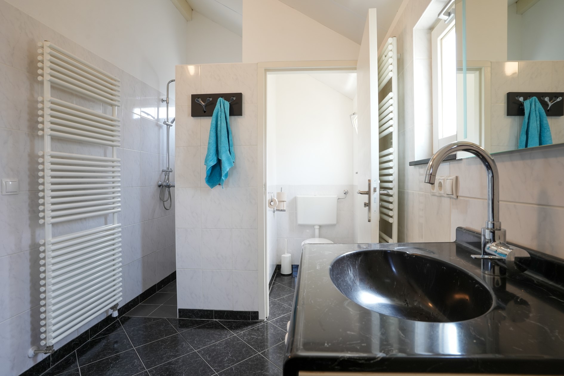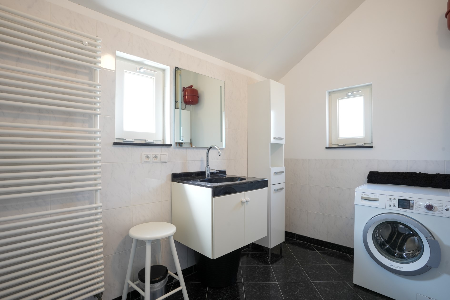 Badkamer voorzien van inloopdouche, wastafelmeubel en witgoedaansluitingen, CV installatie