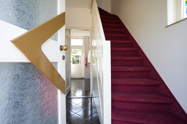Entree, hal voorzien van plavuizen vloer, meterkast en trapopgang