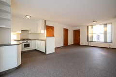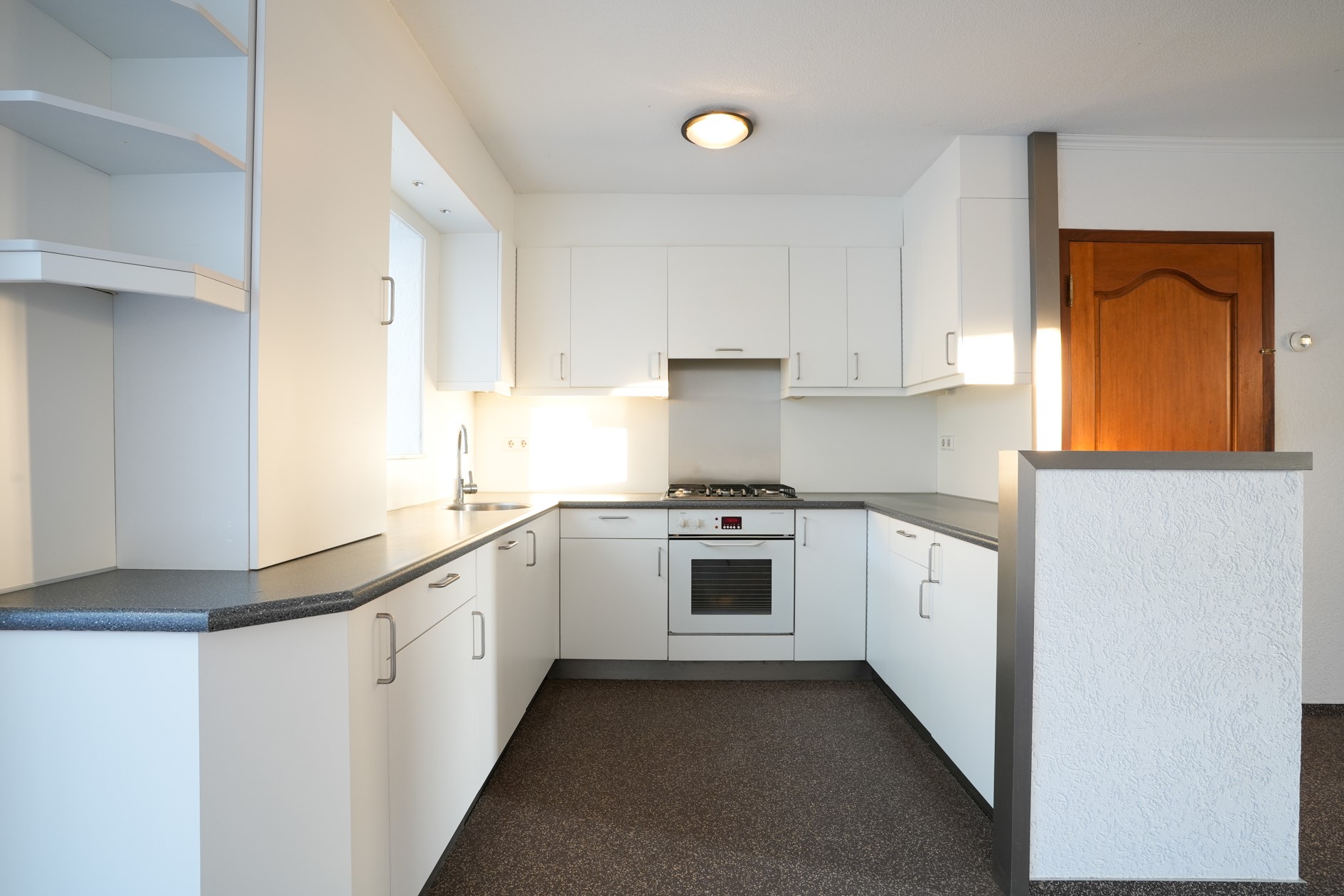 Open keuken voorzien van de volgende inbouwapparatuur: 5-pits gasfornuis, vaatwasser, oven, koelkast, afzuiging.