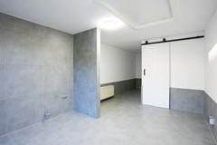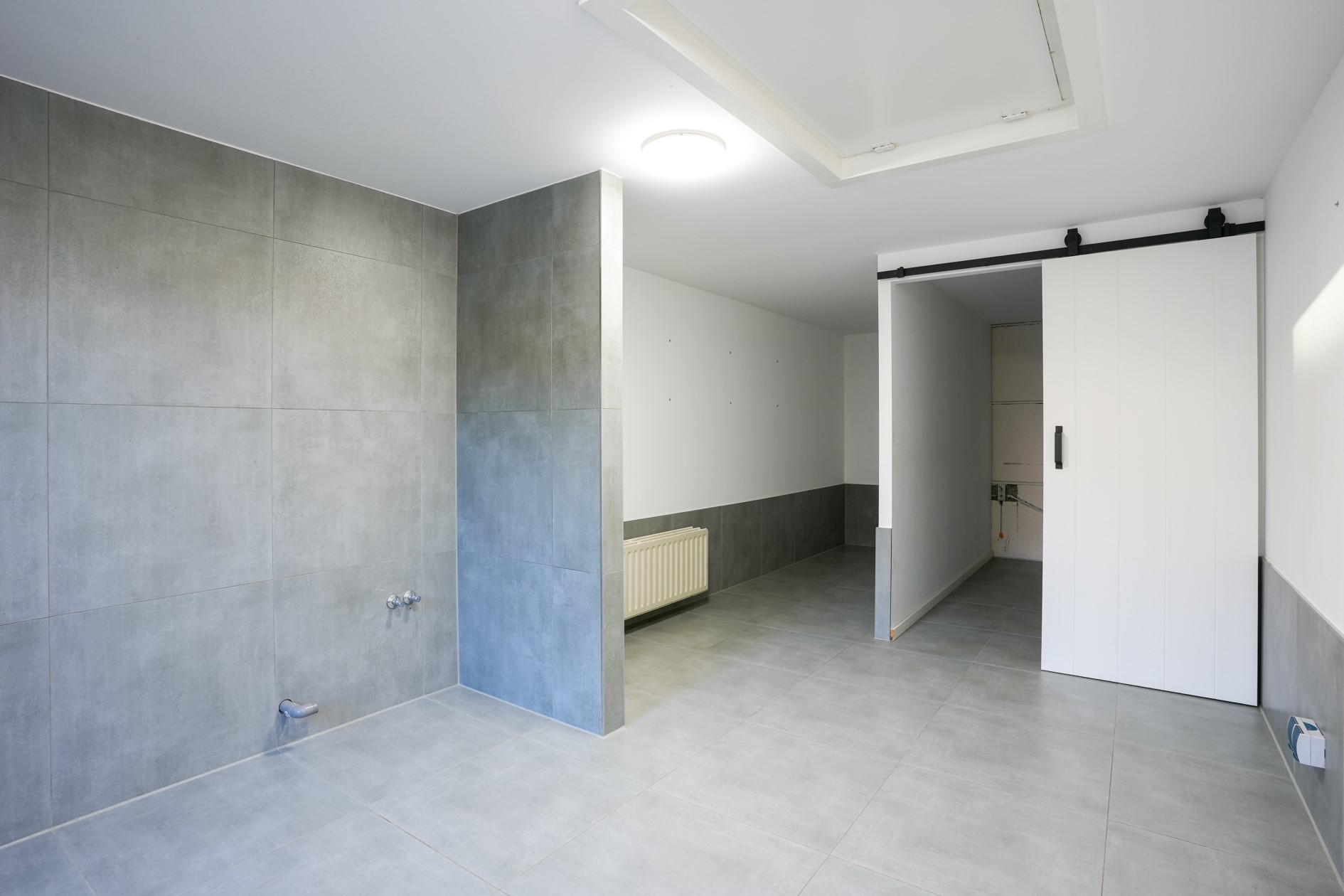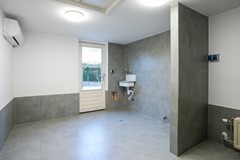 Hobbyruimte inclusief berging, voorzien van tegelvloer en airconditioning, met vliering
