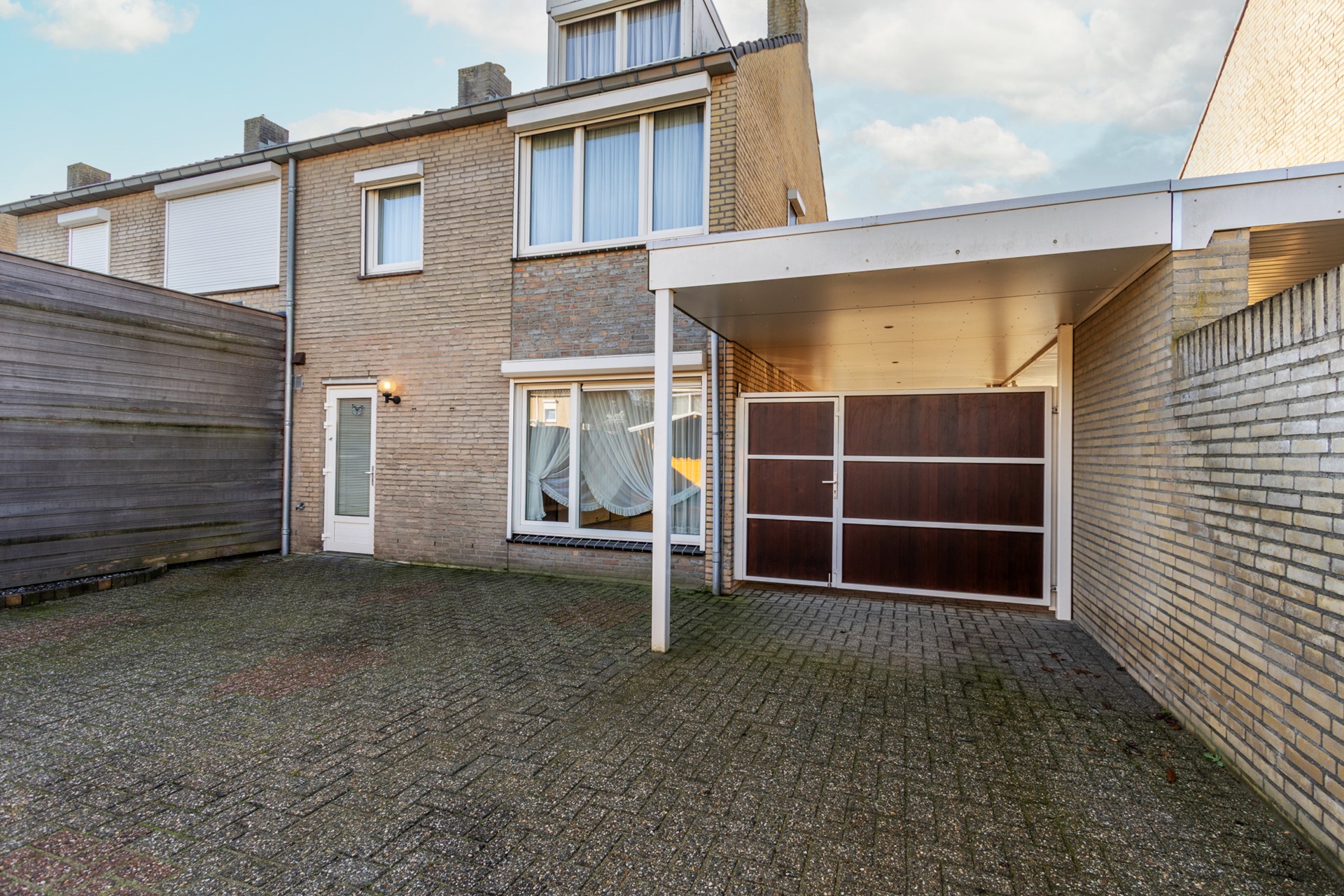 De woning beschikt over een diepe oprit met carport, geschikt voor meerdere auto’s, en een vrijstaande garage die extra opslag- en werkruimte biedt. De achtertuin is onderhoudsvriendelijk aangelegd en kan geheel naar eigen smaak worden ingericht, of dat nu een groene tuin, een ruim terras of een fijne speelplek is. In de tuin staat bovendien een houten tuinhuis voor extra bergruimte.