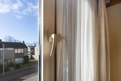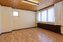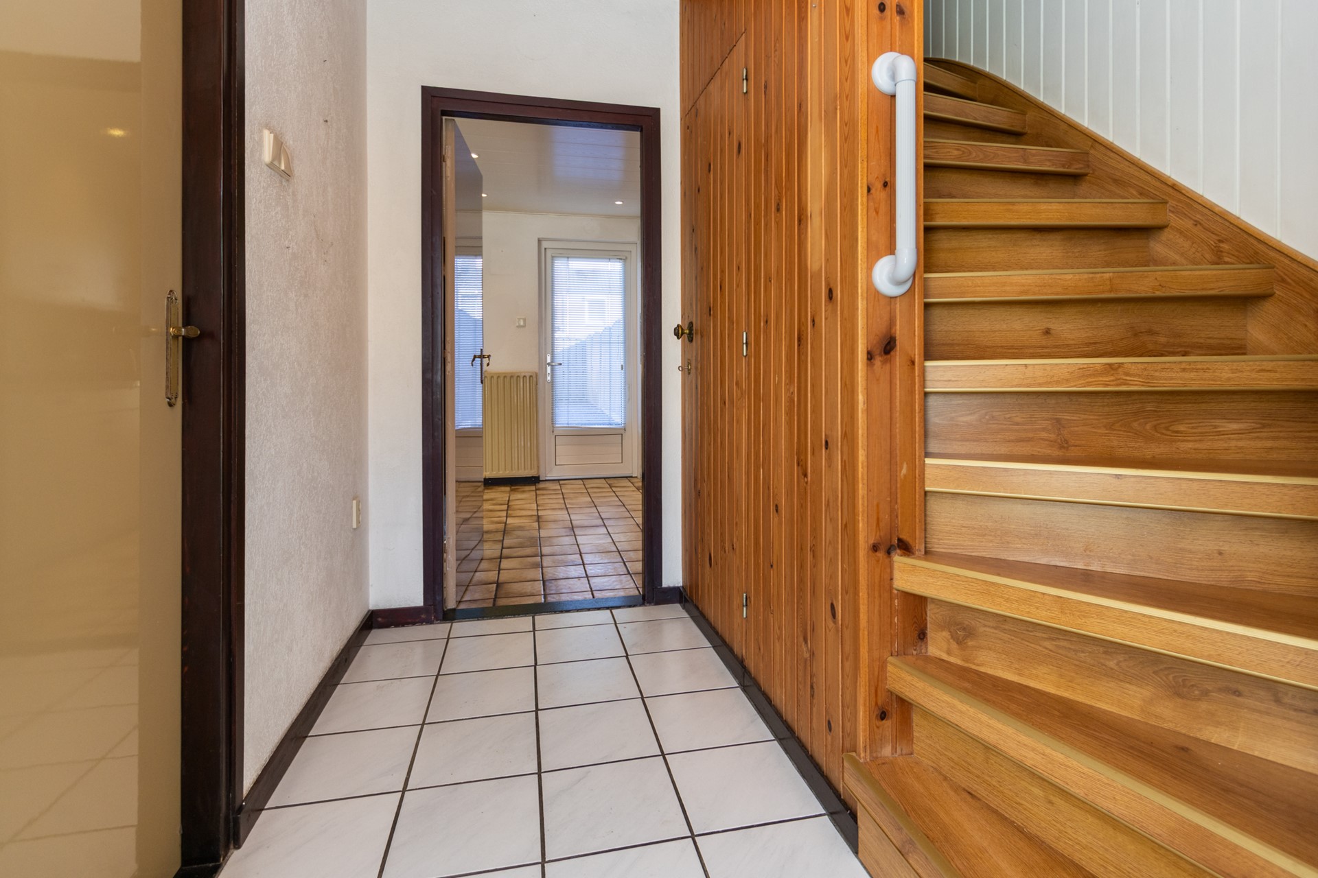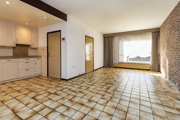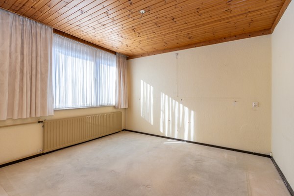 Via de entree aan de voorzijde kom je in de hal, waar zich de trapopgang met weggewerkte meterkast, het toilet en de toegang tot zowel de woonkamer als de keuken bevinden. De woonkamer is licht en ruim dankzij de grote raampartijen en biedt een prettig uitzicht op zowel de voor- als achterzijde van de woning. De ruimte vormt een uitstekende basis om geheel naar eigen smaak te moderniseren en eventueel uit te bouwen.