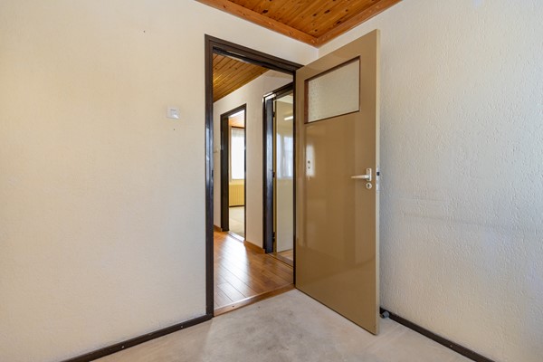 Op de eerste verdieping bevinden zich drie slaapkamers. De kamers zijn licht, praktisch ingedeeld en vormen een uitstekende basis voor verdere modernisatie. Deze ruimtes zijn allen voorzien van rolluiken, grotendeels elektrisch bedienbaar. Op de overloopt is nog een praktische muurkast met houten schappen.