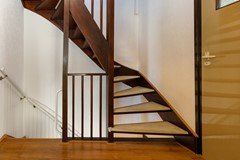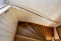 Via de vaste trap kom je op de zolderverdieping, waar de dakkapel zorgt voor extra licht en een verrassend ruimtelijk gevoel. Hierdoor leent deze verdieping zich uitstekend voor het creëren van een extra slaapkamer, werkruimte of hobbykamer. Op het eerste gedeelte van de zolder is de Vaillant cv ketel (2018) geplaatst. Onder de schuine dakvlakken is extra bergruimte gerealiseerd door middel van praktische schuifdeuren, waardoor de ruimte optimaal wordt benut.