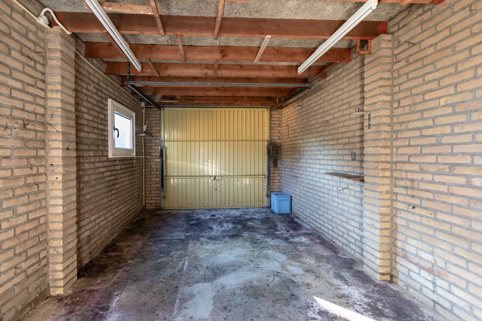 Aan de zijkant van de woning ligt de diepe oprit met carport en de vrijstaande garage. Deze biedt volop bergruimte en mogelijkheden als hobbyruimte, opslag of het stallen van fietsen en gereedschap.