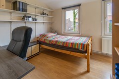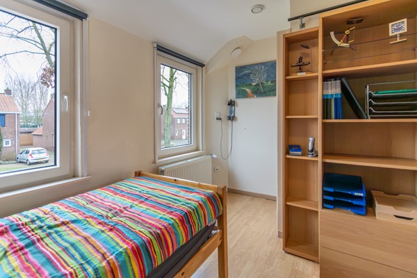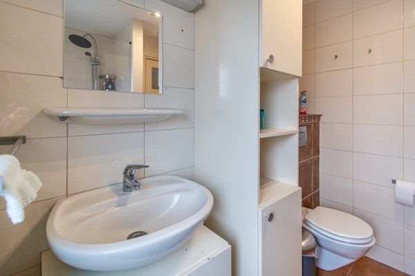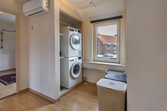 Op de eerste verdieping bevinden zich drie slaapkamers, allen van goed formaat en een voorzien van muurkasten. De overloop beschikt over een aparte hoek met witgoedaansluitingen, waardoor de wasruimte praktisch gelegen is op deze verdieping. Op de overloop is ook een airco aanwezig, wat zorgt voor een aangenaam klimaat op de gehele verdieping. De badkamer is functioneel ingericht en voorzien van de benodigde sanitaire voorzieningen zoals een douche, toilet, wastafel en meubel.
