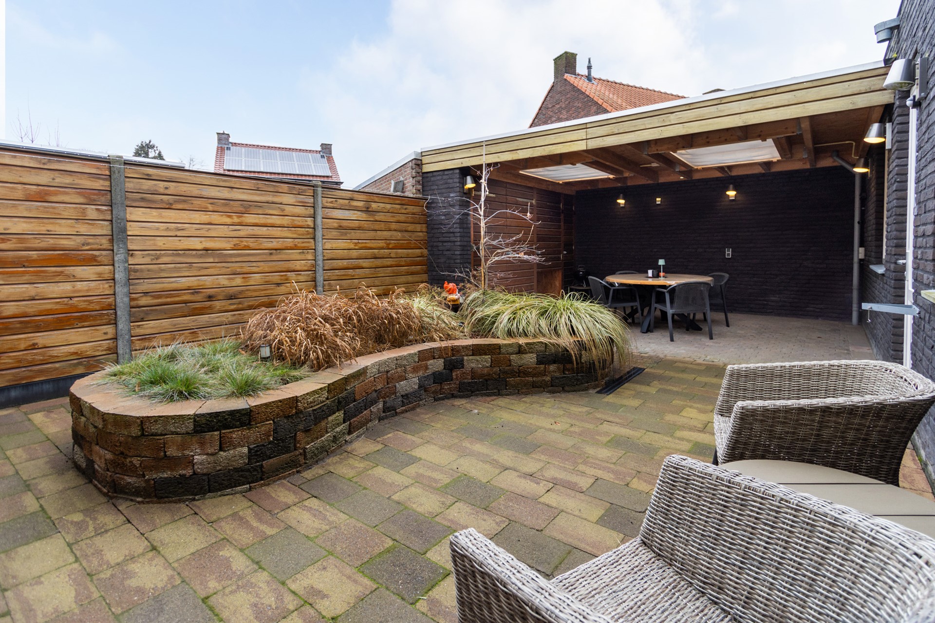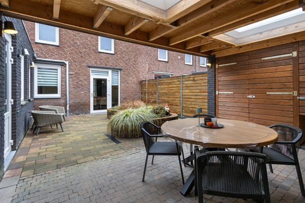 - Verzorgde, onderhoudsvriendelijke achtertuin met overkapping en lichtkoepels