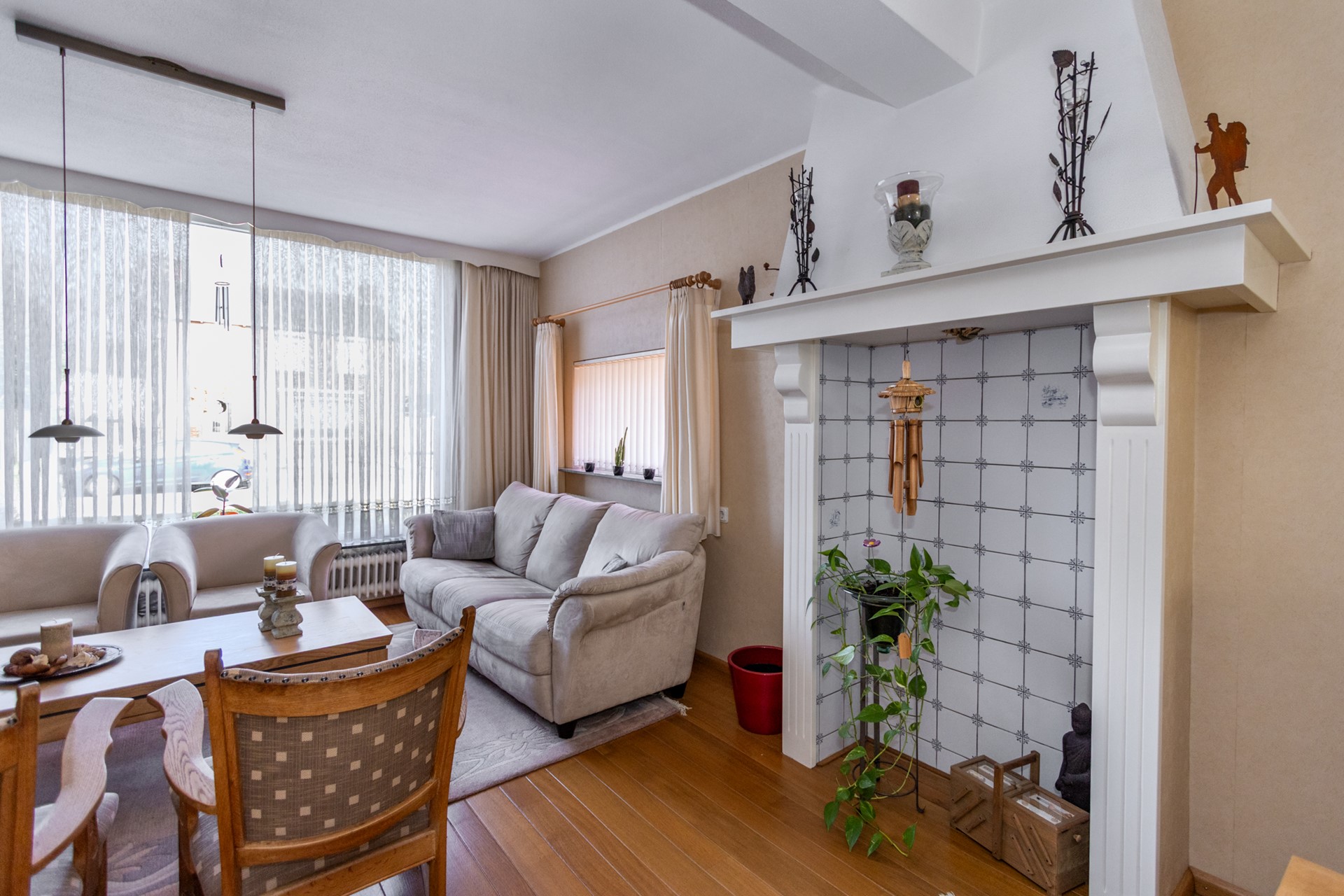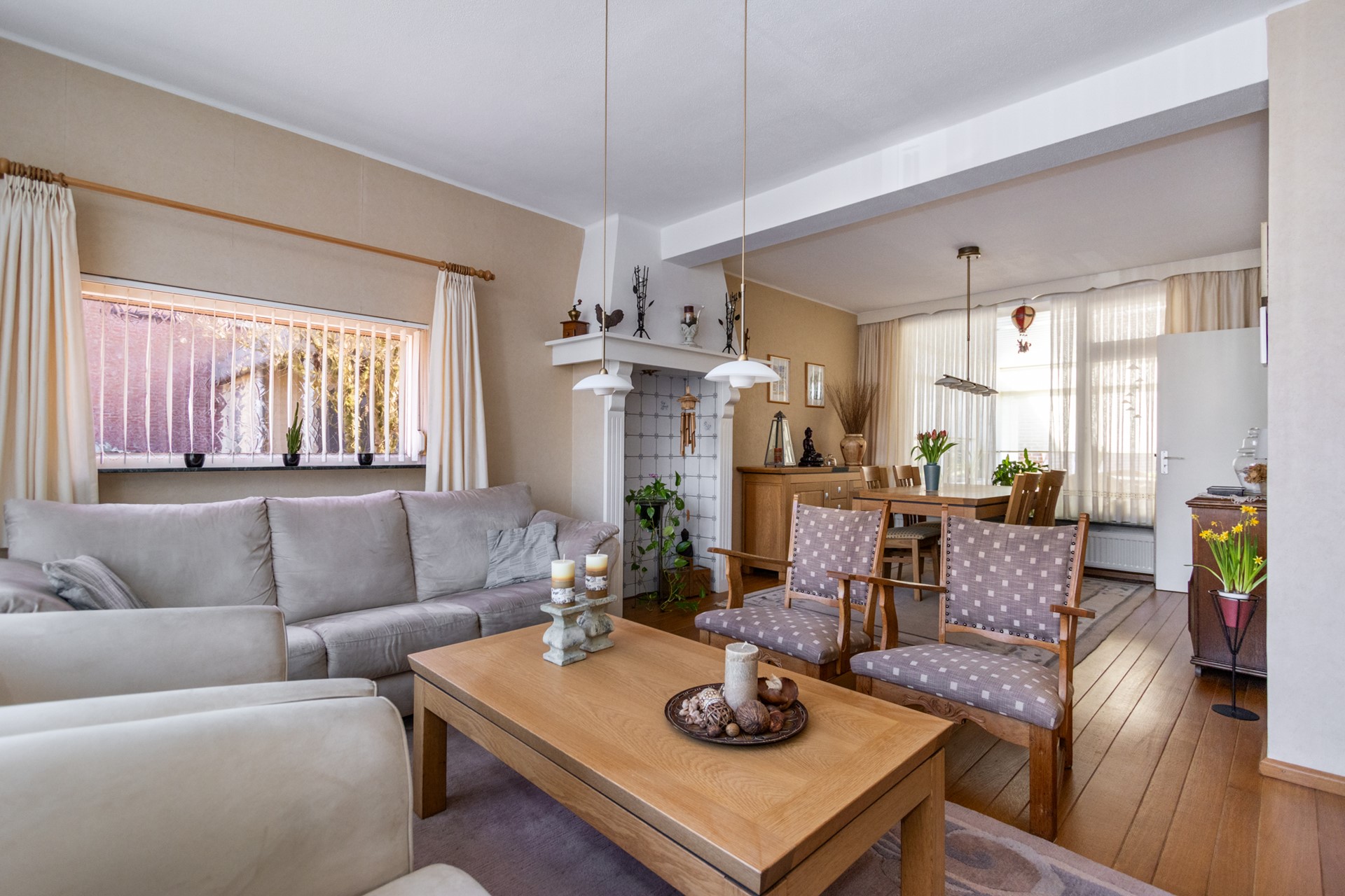 - Woonkamer met echte houten vloer en karakteristieke schouw
