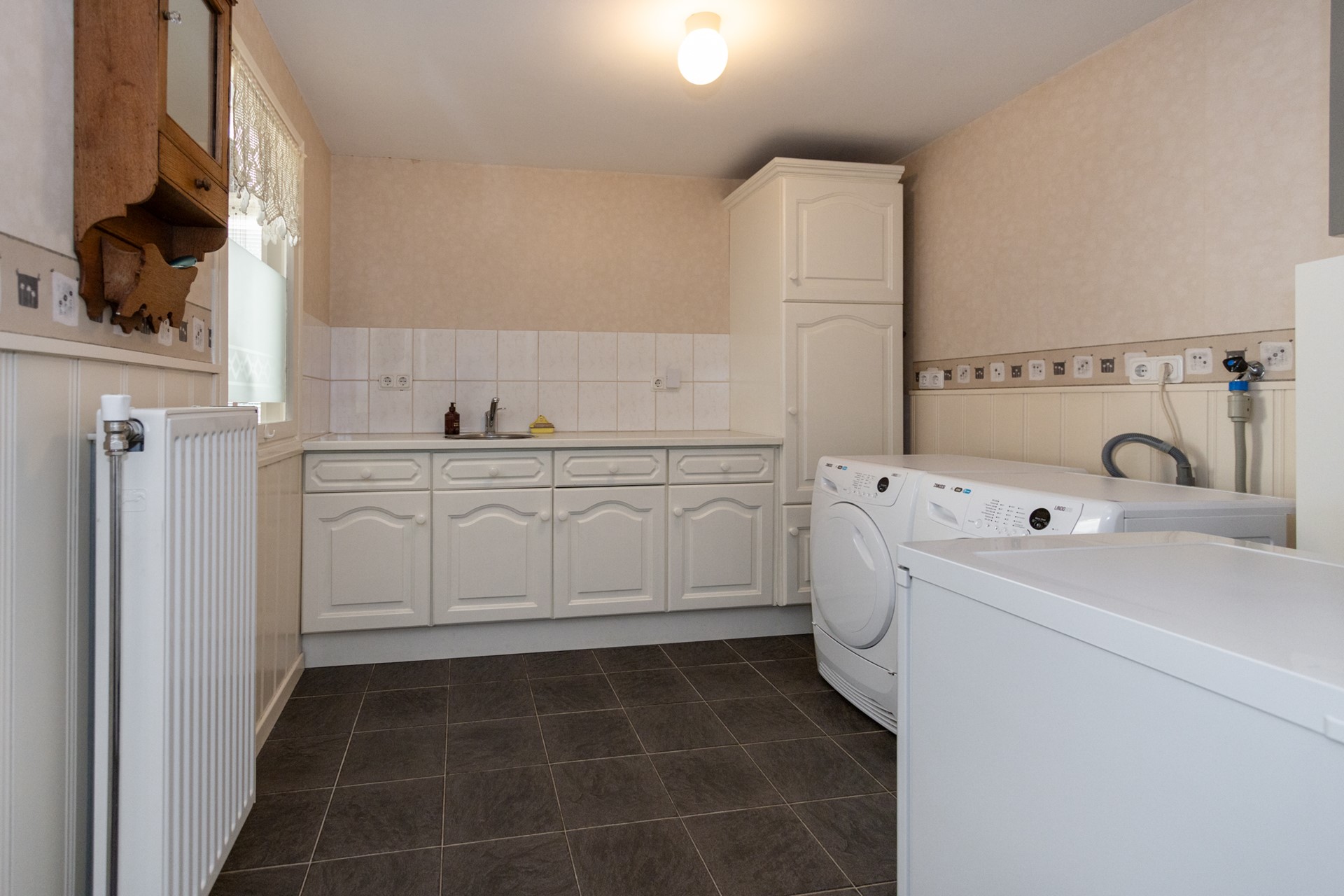- Bijkeuken met toilet, witgoedaansluitingen en cv ketel