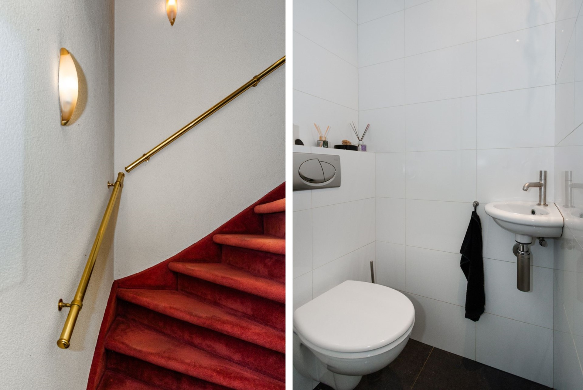 Het toilet bevindt zich in het tussenhalletje dat leidt naar de eerste verdieping.