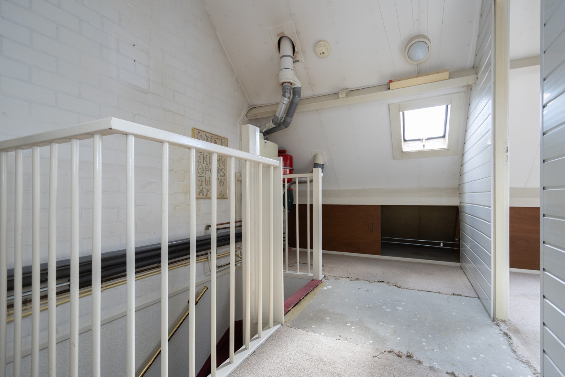 Via een vaste trap bereik je de zolderverdieping. Deze ruimte leent zich uitstekend voor het realiseren van een vierde slaapkamer, hobbyruimte of thuiskantoor. Het dakraam zorgt voor natuurlijke lichtinval. Op de voorzolder zit de aansluiting van de Cv-ketel en voor de wasmachine.