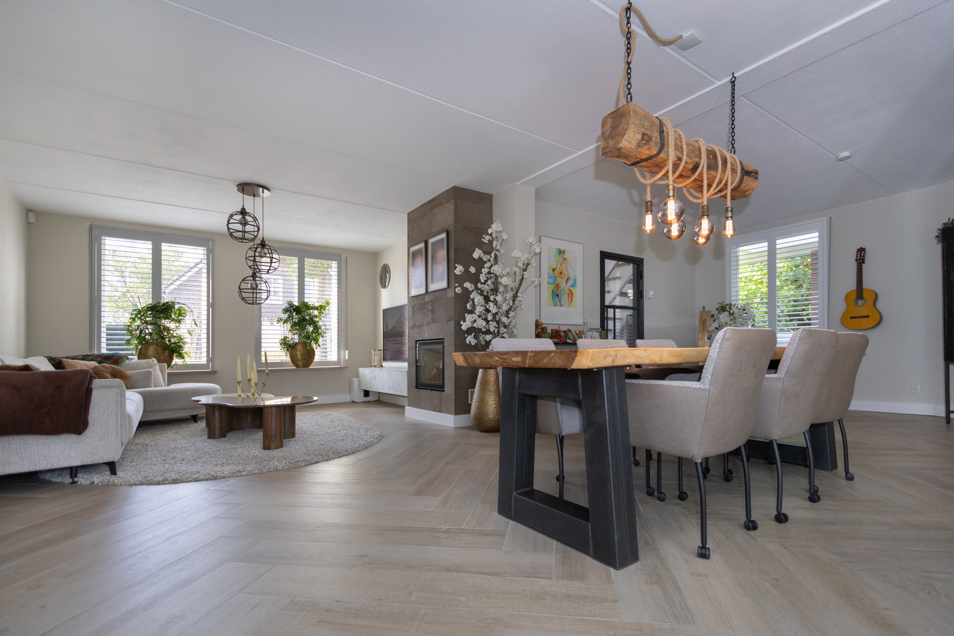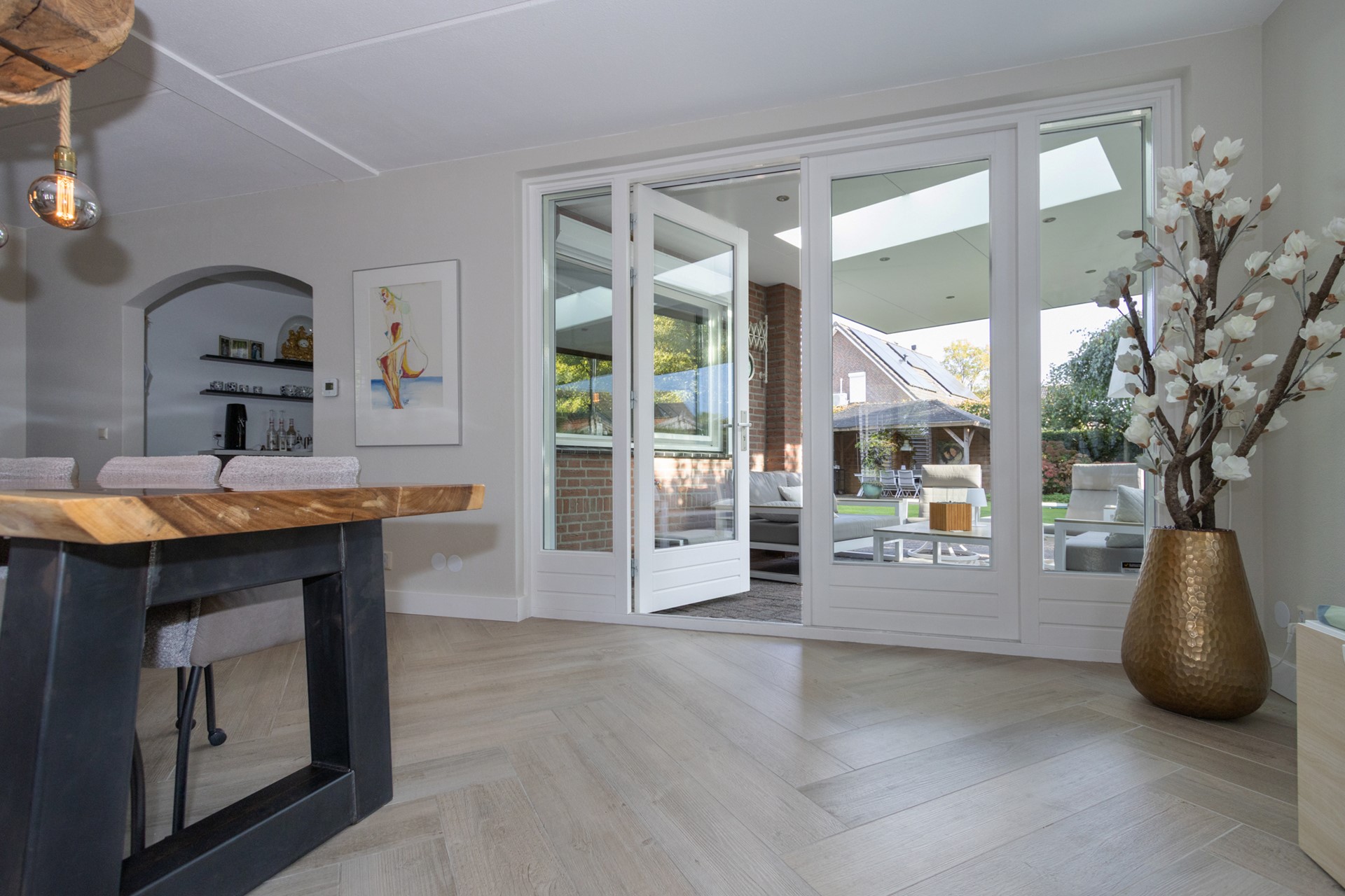 De gehele begane grond is in 2023 voorzien van vloerverwarming en een luxe vloertegel in visgraatpatroon, wat zorgt voor een warme en nette uitstraling.
