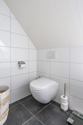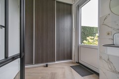 Je bereikt de entree via de oprit aan de zijgevel. In de ontvangsthal vind je het toilet, de vernieuwde meterkast (2023) en de nieuwe eikenhouten trap naar de verdieping.