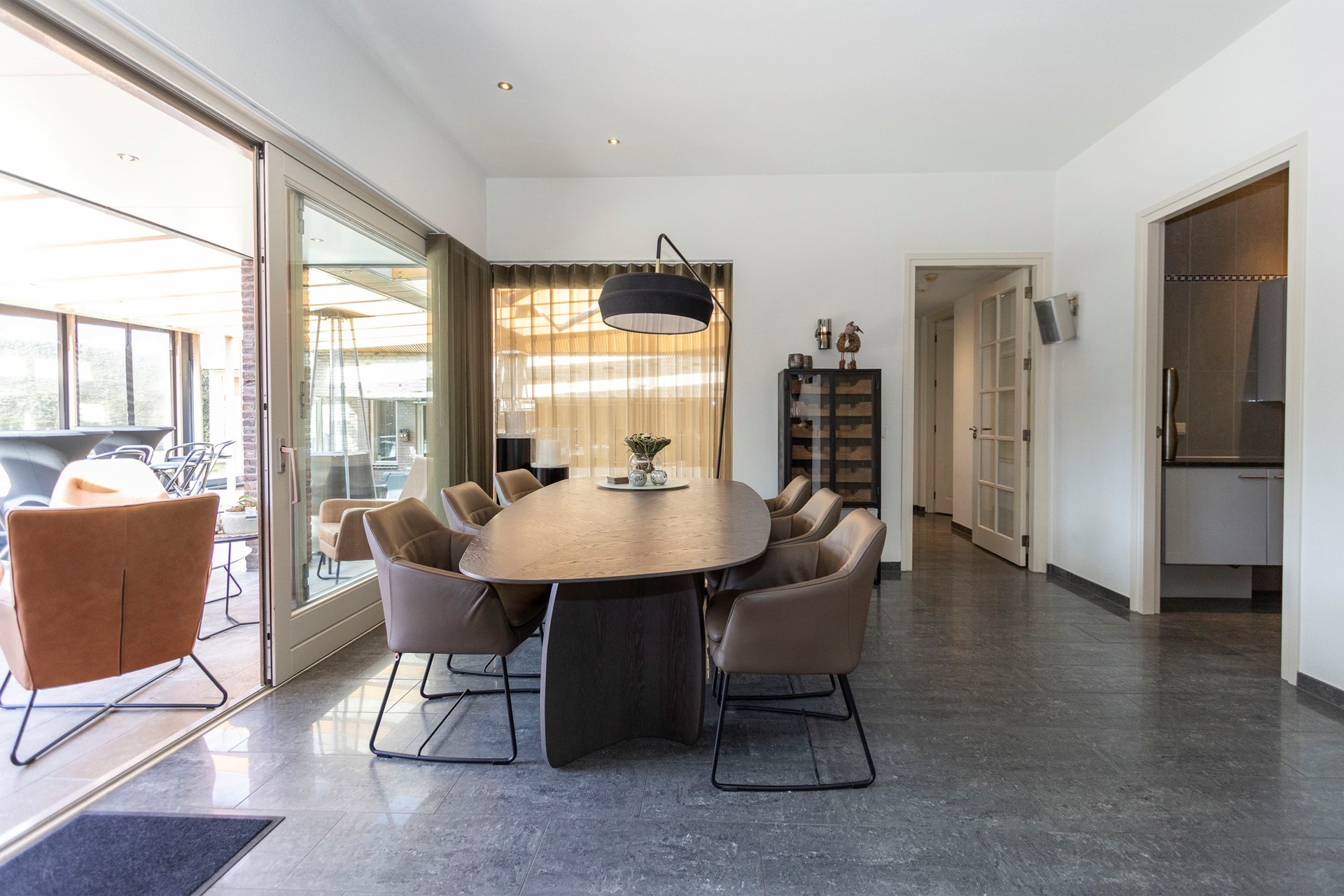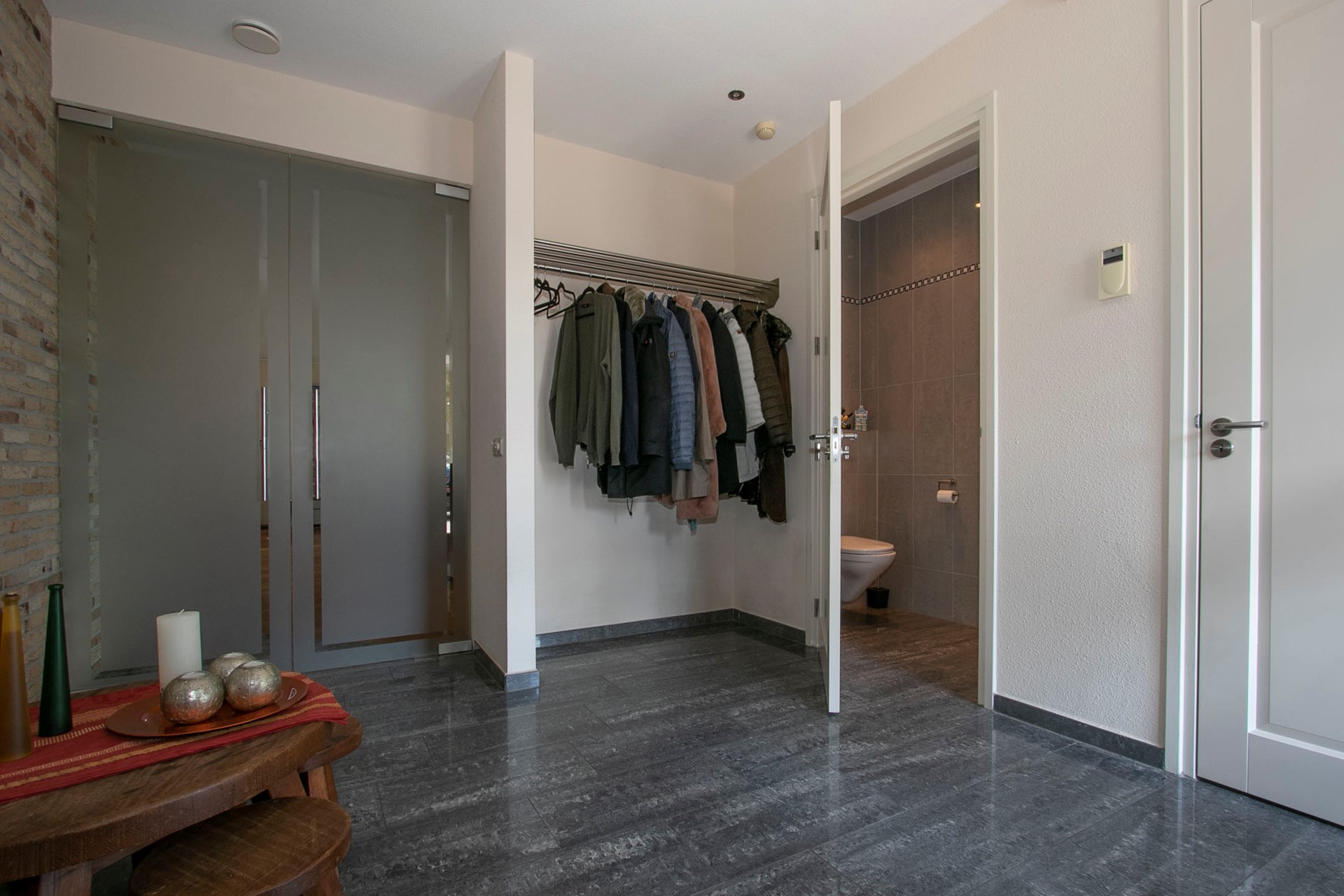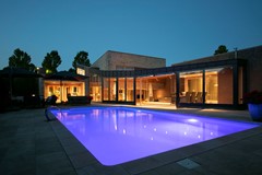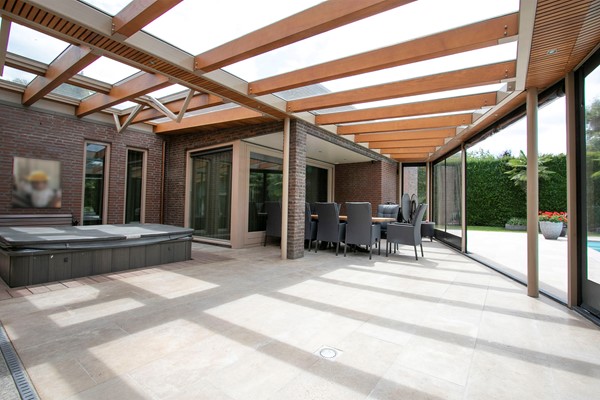 Een uitgestrekte gang verbindt de sfeervolle woning met een apart woongedeelte met eigen ingang. Niet alleen binnen, maar ook buiten is het genieten van alle luxe! Onder het grote overdekte terrasgedeelte met jacuzzi is het zomer en winter heerlijk toeven. En op warme dagen neem je zo een verfrissende duik in het grote zwembad dat omgeven wordt door een fraai aangelegde tuin.