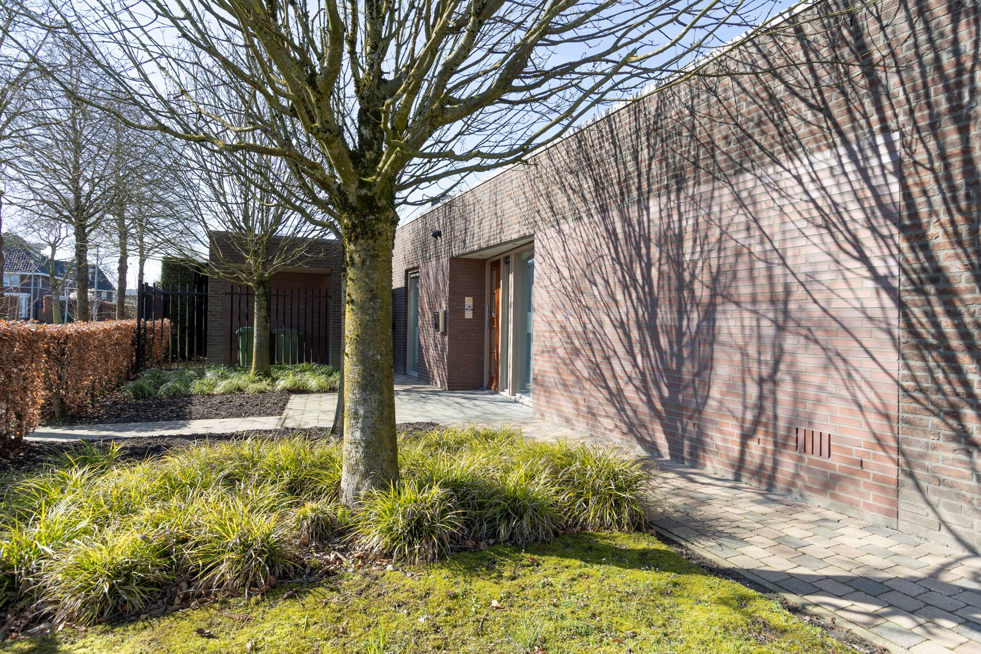 De zelfstandige woonruimte is verbonden aan het woongedeelte aan de voorzijde door middel van een lange gang. Het gebouw heeft ook een eigen entree aan de zijkant van het complex, direct achter een aantal parkeerplaatsen (inclusief laadpaal voor elektrische auto’s). Vanuit de buiteningang kom je eerst in een hal met toegang tot een toilet en douchegelegenheid. Vanuit hier zijn drie aparte ruimtes bereikbaar, waarvan er één is ingericht als woonkamer met complete keuken en bar. Vanuit deze ruimte heb je ook toegang tot een overdekt terras en de tuin.