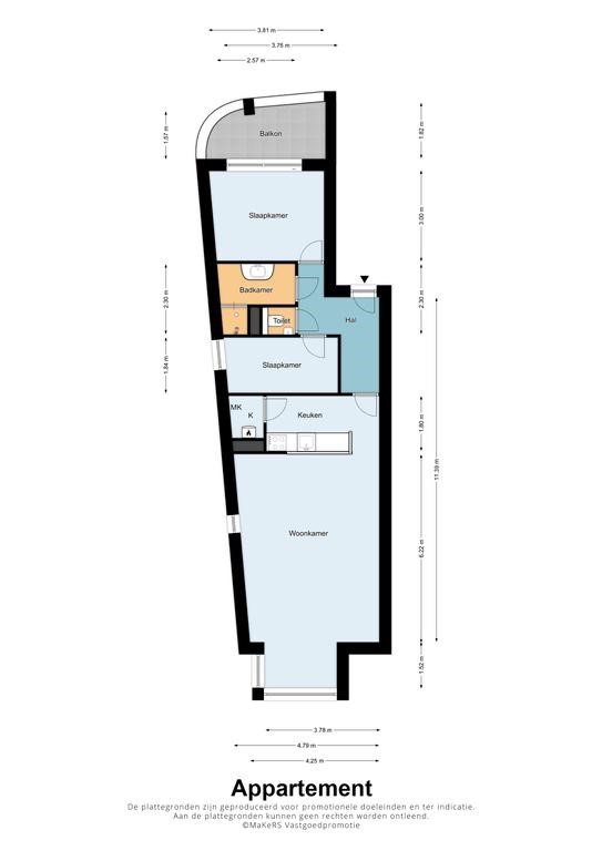 | Aantal kamers | 3 (waarvan 2 slaapkamers) |
