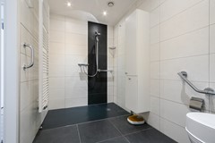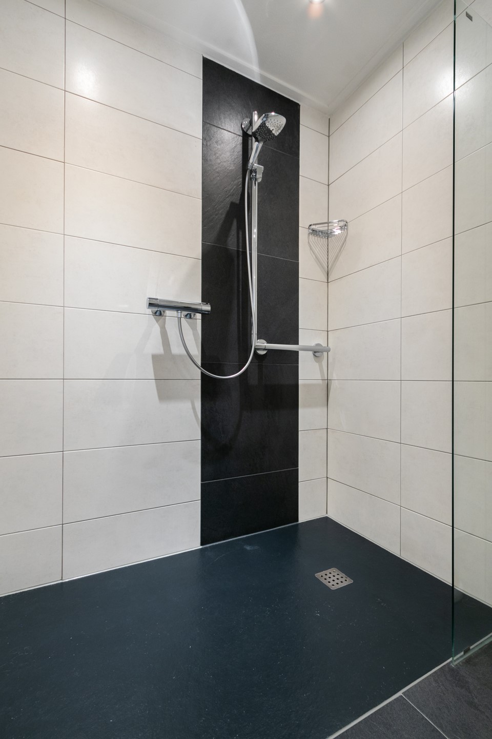 De moderne badkamer is voorzien van een toilet, wastafel en een ruime comfortabele inloopdouche. Een technische ruimte in het appartement doet tevens dienst als opbergruimte en is voorzien van een wasmachine-aansluiting.