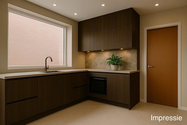 In de hal vind je het toilet, de meterkast en de trap naar de eerste verdieping. De woonkamer is ruim opgezet en voorzien van een schuifpui naar de achtertuin, waardoor er veel lichtinval is en een directe verbinding met buiten ontstaat. Op de begane grond zijn elektrische rolluiken geplaatst voor extra comfort. De keuken sluit aan op de woonkamer en biedt volop mogelijkheden voor een moderne inrichting. Ook is hier een praktische trapkast aanwezig die ideaal dienstdoet als provisieruimte. Via een tuindeur heb je toegang tot de achtertuin.