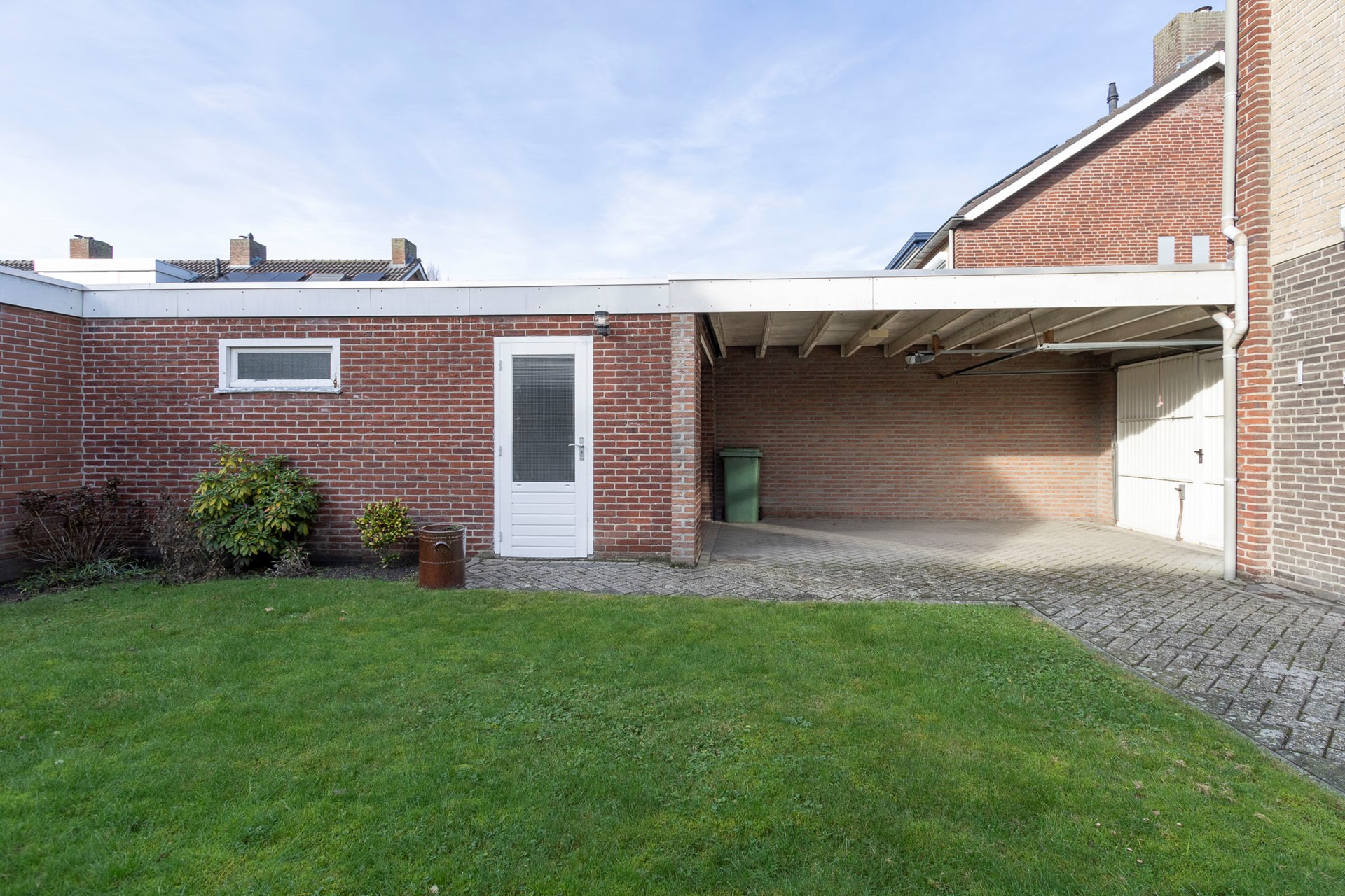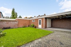 De achtertuin is bereikbaar via de schuifpui in de woonkamer en tuindeur in de keuken. Deze biedt volop mogelijkheden om te genieten van het buitenleven. Aan de zijkant van de woning bevindt zich een garage met carport met elektrische kantelpoort en aansluitende een ruime garage. Deze is praktisch ingericht en biedt ruimte voor opslag of hobby.