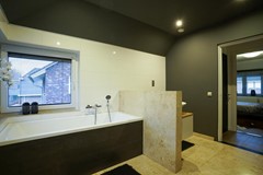 Badkamer voorzien van inloopdouche, ligbad en dubbel wastafelmeubel, vloerverwarming